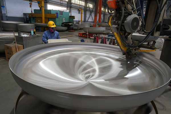 工人在位于興仁鎮的南通四方罐式儲運設備制造有限公司標罐車間忙碌。