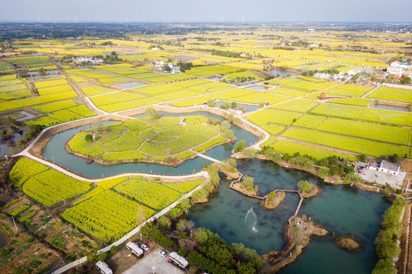 3月17日拍攝的油菜花節核心景區(無人機照片)。湖北省沙洋縣常年種植油菜面積70余萬畝,當地油菜花海深受游客喜愛。2023年3月以來,在沙洋縣油菜花節核心景區曾集鎮張池村等地,游客成群結隊,在金黃色的田野中徜徉,感受美好春光。近年來,沙洋縣將油菜產業與文旅產業深度融合,通過賞花經濟帶動鄉村餐飲、民宿等產業發展,助力鄉村振興。