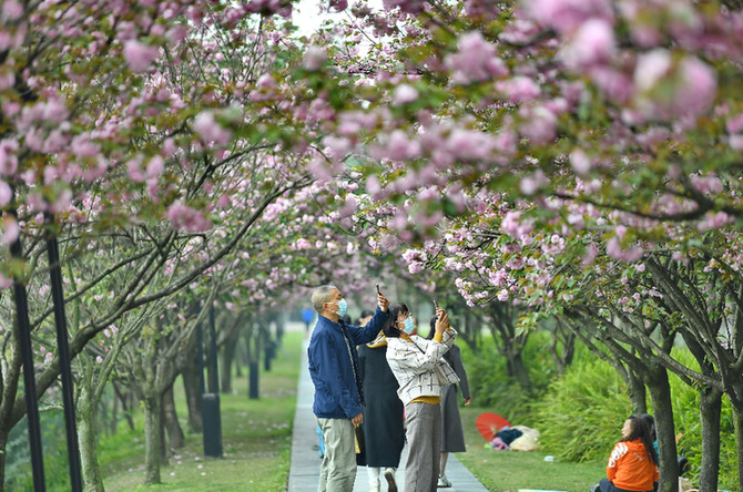 3月28日,游人在成都市雙流區一處公園內賞花。春暖花開時節,人們紛紛來到戶外,賞花踏青,樂享春光。