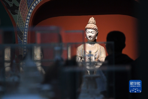 4月5日,觀眾在敦煌研究院蘭州分院敦煌藝術館參觀。新華社記者陳斌 攝