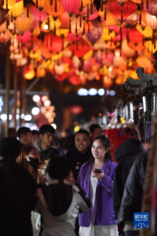 3月16日,游客在敦煌夜市游覽。新華社記者陳斌 攝