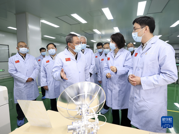 在銀河航天(北京)網絡技術有限公司,李強聽取公司整體情況介紹,察看最新在研產品和已發射衛星模型,不時詢問產品性能、材料、工藝等。他說,衛星網絡產業發展方興未艾,要瞄準國際先進水平,支持相關企業加強關鍵技術和核心部件研發攻關,持續降低制造成本,加大應用推廣力度,進一步拉長產業鏈條,推動相關產業協同發展。