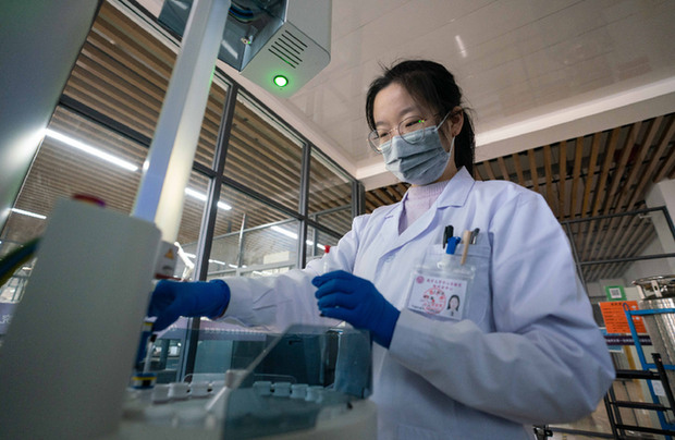 3月28日,南開大學—滄州渤海新區綠色化工研究院分析檢測中心工作人員在進行樣品檢測前準備工作。新華社記者 駱學峰 攝