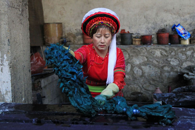 在政策扶持下,白族扎染技藝國家級代表性傳承人段銀開在博物館開辦白族扎染培訓班,并向參訓村民發放“技能學習補貼”。