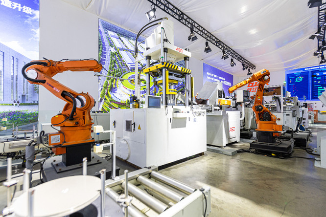 4月27日,在位于浙江溫嶺市經濟開發區的愛仕達金屬炊具未來工廠,自動化生產線可以實現兩分鐘內將鋁片加工至成品鍋再到打包出庫。