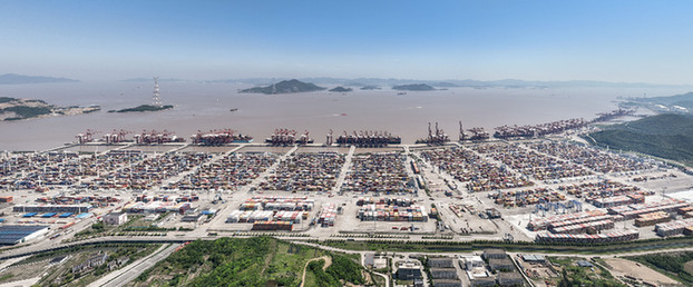 寧波舟山港吞吐量穩步回升。圖為5月9日拍攝的寧波舟山港穿山港區。新華社記者 翁忻旸 攝