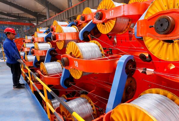 5月15日,在青島漢纜股份有限公司海纜生產基地,工人在生產用于海上風力發電及石油平臺等大型海洋工程建設設施的海纜產品。
