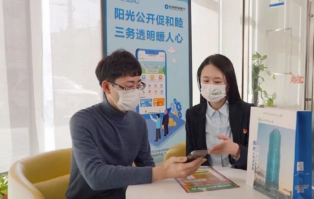 建行工作人員向客戶介紹“陽光三務”智慧平臺。受訪者供圖