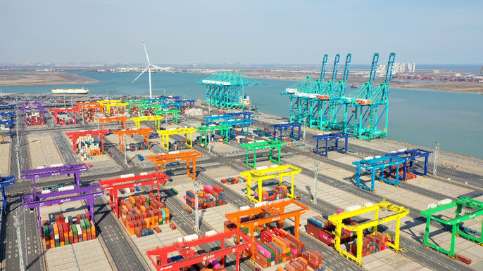 這是天津港全物聯網集裝箱碼頭。資料照片