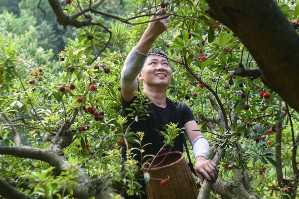 六月十二日,在慈溪市橫河鎮梅園村的楊梅園中,種植戶采摘成熟的楊梅。近期,“中國楊梅之鄉”浙江省慈溪市的露天楊梅進入成熟期,陸續采摘上市。