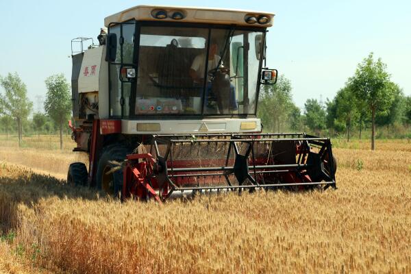 6月11日,在山東省濱州市沾化區泊頭鎮陳家村家庭農場,小麥聯合收割機在田間進行黑小麥收割作業。與普通小麥相比,黑小麥具有耐寒抗凍、耐晚茬、分蘗率高、抗倒伏、抗干旱等優良性狀,且鋅和鐵的含量是普通小麥的2倍,種植效益更高,被稱為“黑金”。