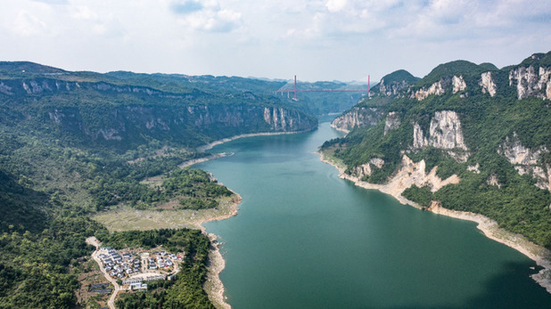 貴州省畢節市烏江源百里畫廊景色(2022年5月6日攝,無人機照片)。新華社記者 陶亮 攝