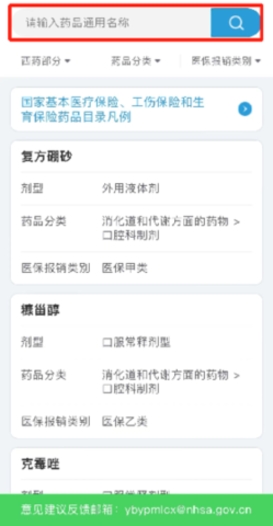 同時,公眾也可以根據自己的需求,選擇“藥品分類”或“醫保報銷類別”進行篩選。如果公眾對醫保藥品目錄查詢功能有意見建議,可以通過電子郵件進行反饋。