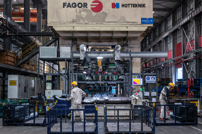 7月16日,在位于重慶市兩江新區的重慶至信實業集團有限公司熱壓車間,工人將剛下線的零件裝箱。