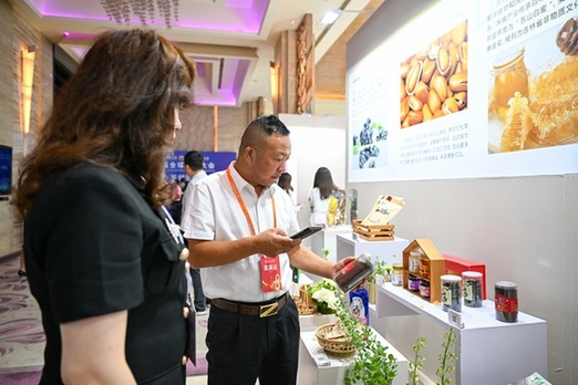 參會嘉賓在第八屆全球吉商大會上參觀吉林特色商品?! ⌒氯A社記者 顏麟蘊 攝
