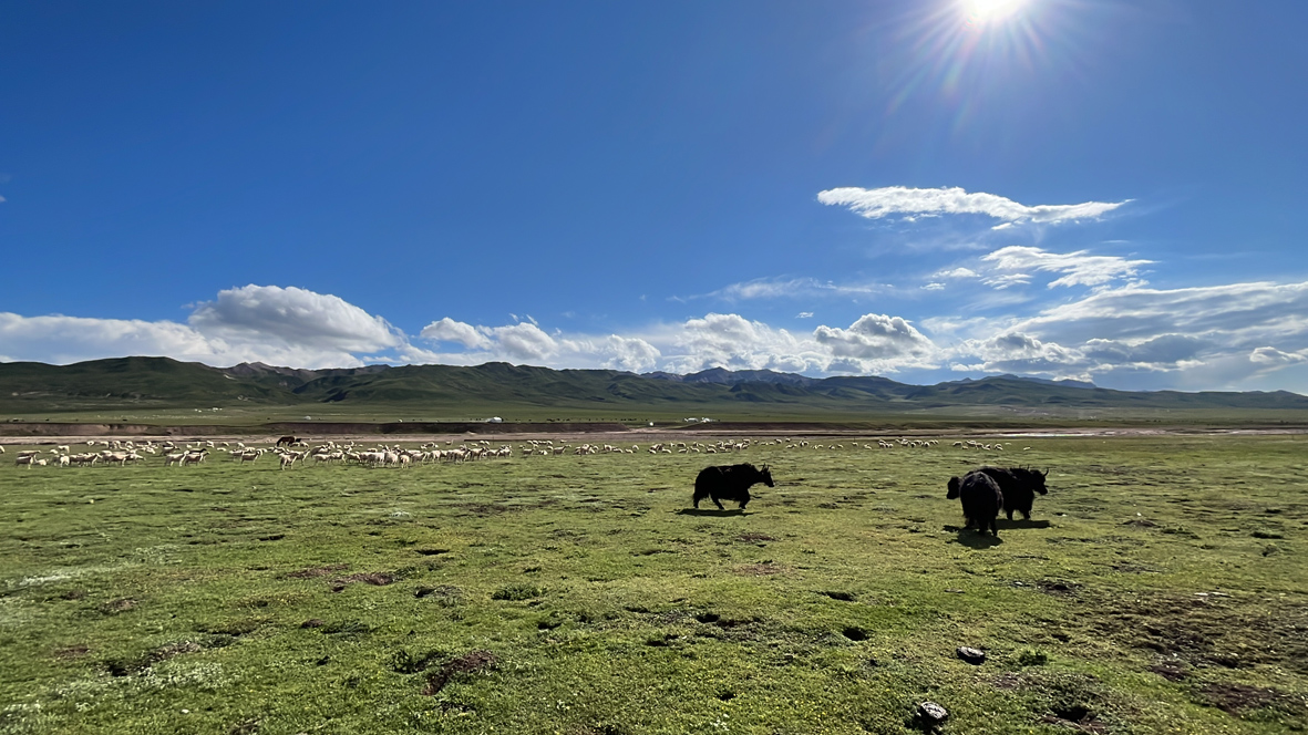 “我們合作社目前有超過8000只羊,100多頭牦牛,當地牧民普遍年收入可以達到20萬元以上。建成的千只藏羊標準化生產基地得到國家撥款支持,擁有1400只藏羊?!鼻嗪F钸B縣青陽溝村駐村組長雷萬嘉站在牧民的帳篷旁告訴記者。