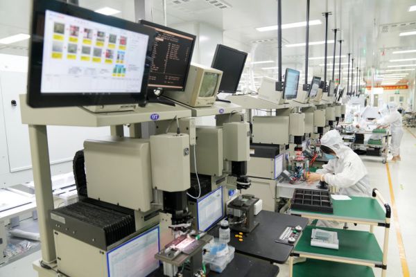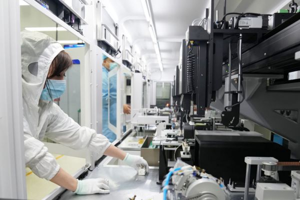 在位于穆棱市的北一半導體模塊封裝無塵車間里,呈現出一派繁忙的生產景象,機器一刻不停地運轉,操作人員緊盯電腦,監測著生產線的運行。