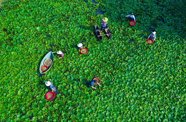 眼下,各地菱角陸續進入采摘期,農民加緊采摘,確保新鮮的菱角及時供應市場。