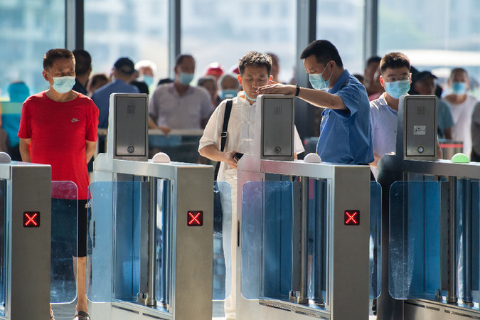 圖為火車站安檢區,旅客進行人臉識別通過安檢。資料照片