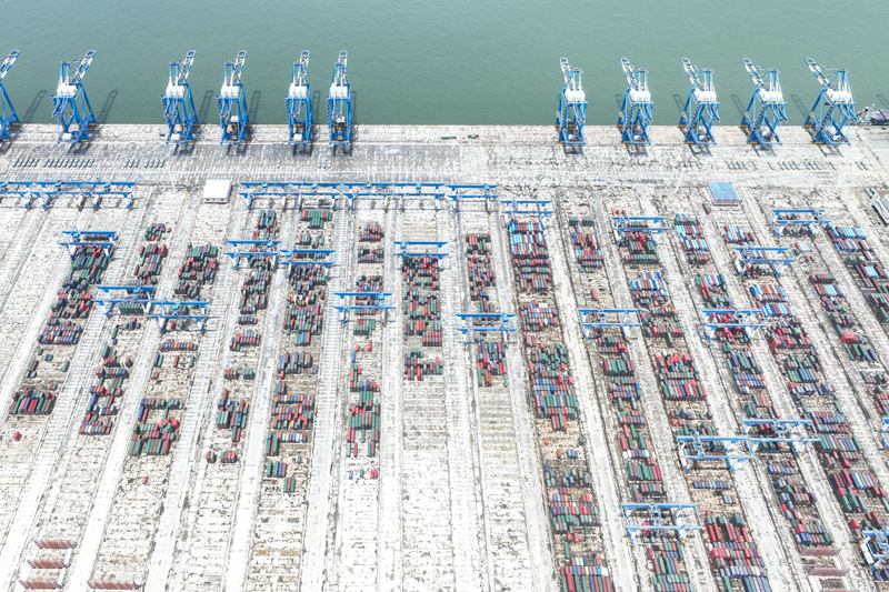 北部灣港欽州自動化集裝箱碼頭(無人機照片)。記者 曹祎銘 攝