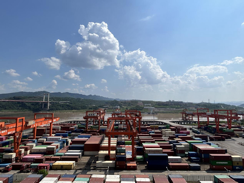 西部陸海新通道建設為重慶開放高地建設注入新動力。數據顯示,2023年上半年,重慶經西部陸海新通道三種主要運輸組織方式運輸集裝箱量和貨值分別同比增長36%和14%。截至2023年6月底,重慶經西部陸海新通道三種主要運輸組織方式累計運輸貨物50萬標箱,貨值850億元。