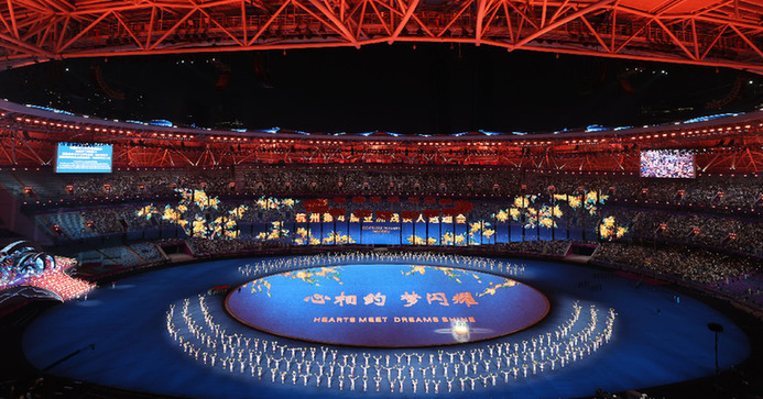 10月22日拍攝的亞殘運會開幕式現場。當日,杭州第4屆亞洲殘疾人運動會開幕式在杭州奧體中心體育場舉行。