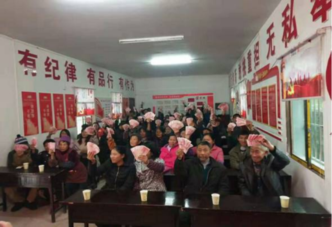 石阡縣大沙壩鄉任家寨村村民領取分紅資金圖片