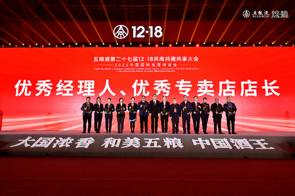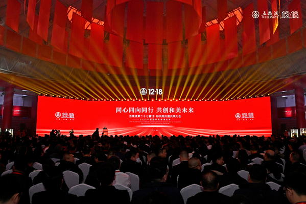 12月18日,以“同心同向同行 共創和美未來”為主題的五糧液第二十七屆12·18共商共建共享大會在四川宜賓舉行。本次大會為三年新冠疫情防控轉段后首次恢復線下舉辦,千余名經銷商、投資者等共聚一堂,展示了五糧液人同心同向同行的堅定信念,提交了五糧液穩健高質量發展的亮眼答卷,彰顯了奮力建設世界一流企業的底氣與自信。