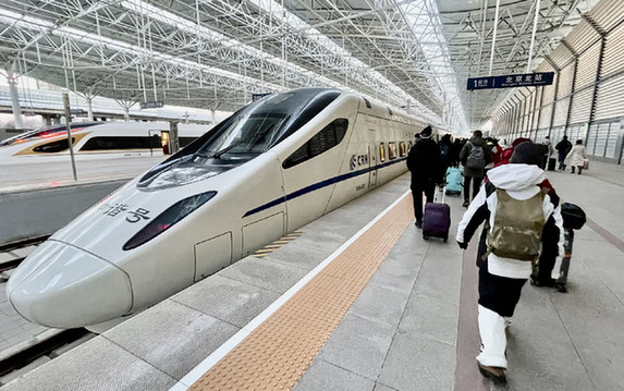 不少北京市民從北京北站乘坐京張高鐵的“滑雪專列”去河北省張家口市崇禮區的冬奧滑雪場滑雪、賞雪?!∮浾摺±钚馈z