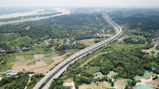 2023年6月28日,長株潭城際軌道交通西環線一期工程開通運營。這是湖南省首條跨市城市軌道交通線路,開通后長沙和湘潭之間的通勤時間縮短至20分鐘左右,極大方便了兩市市民跨市出行。圖為當日拍攝的長株潭城際軌道交通西環線一期工程的高架軌道(無人機照片)。記者 陳澤國 攝