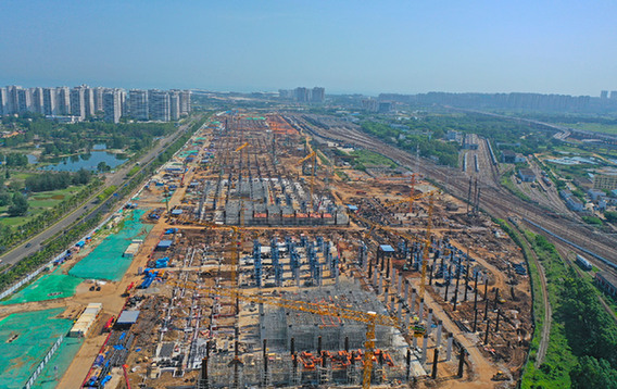 近日,在??谑形骱0?,??谛潞8酆湍细邸岸€口岸”(貨運)集中查驗場所、新海港片區“二線口岸”集中查驗場所附屬專用通道、海南綜合型寄遞物流監管中心、??谀细邸岸€口岸”(普鐵旅客)查驗設施、??谀险捐F路貨列查驗區5個封關建設項目集中于此,工人施工熱火朝天,車輛穿梭往來不停。