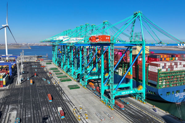 ——叫響津港效率“金招牌”。推進智慧平臺建設,天津港電子商務網、港口智能管控平臺、關港集疏港平臺等數字化平臺穩定應用,集裝箱主要業務單證電子化率達100%、線上受理率超95%。廣泛推進智能閘口建設,集卡平均作業時間縮短至16分鐘以內。引航拖輪協同智控中心投入使用,靠離泊效率提升8%。外貿集裝箱船舶準班率位居全球前列。2019年以來120次打破各貨類效率紀錄,“2M北歐一線”、中遠海運美西線、韓新海運歐洲線等重點航線效率保持全球第一,“津港效率,全球領先”品牌持續叫響。