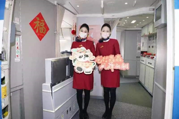 “今天是中國傳統的除夕夜,非常高興能和大家相聚在本次國航春節主題航班上,在萬米高空共度這個團圓中國年!”2月9日,國航CA931航班的機長廣播里傳來了新春祝福。當天,這架“龍行龘龘 鳳舞翩翩”主題航班從北京飛往法蘭克福,這也是中國農歷新年被列為聯合國假日后,國航首次在國際航班舉辦的春節主題航班。
