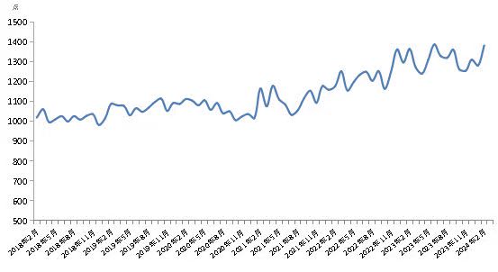 2月份,新華·中鹽食用鹽(商超)價格指數報1381.73點,較上期(2024年1月)上漲101.15點,漲幅7.90%;較基期(2018年1月)上漲381.73點,漲幅38.17%;較周期內最高點1387.12點(2023年6月)下跌5.39點,跌幅0.39%;較周期內最低點981.91點(2018年12月)上漲399.82點,漲幅40.72%。