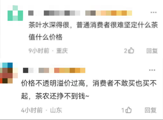 市場價格可以發生合理變化,但新茶摻陳茶、老茶翻新、周邊產區冒充核心產區等各種行業亂象已經成為阻礙消費者下單的無形門檻。不少消費者紛紛表示不會鑒茶、價格不透明、溢價過高都是影響購買決策的重要因素。