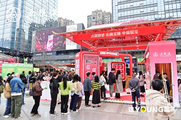 互動合影、游戲闖關、調酒表演、飛花令……在成都交子音樂廣場,以“五糧液,這YOUNG喝”為主題的“潮玩”活動將現場火熱氛圍拉滿。這一創新打造的社交化、沉浸式、體驗式消費場景,成為眾多年輕人踴躍參與的“打卡”項目。