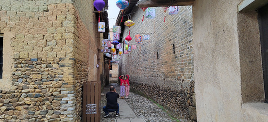 游客在太平堡景區圍屋邊拍照留影?!∮浾摺±蠲谰辍z