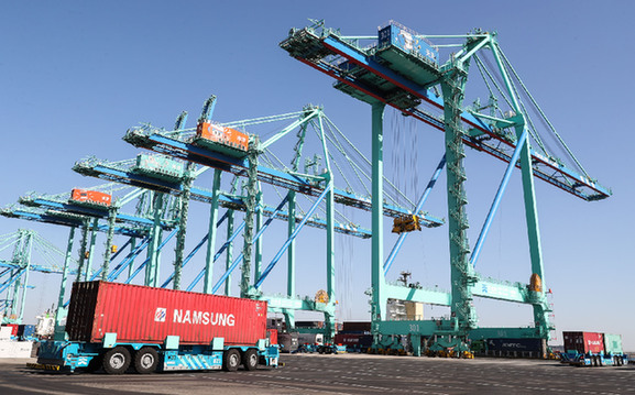 這是3月1日拍攝的天津港北疆港區C段智能化集裝箱碼頭?!⌒氯A社記者 單宇琦 攝