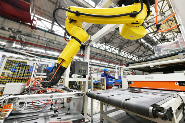 圖為在哈電集團哈爾濱電機廠有限責任公司生產車間,工作人員在操控自動涂漆線機械手智能化改造項目的智能設備。新華社記者 王建威 攝