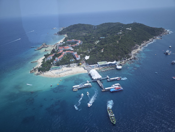 圖為直升機空中游覽過程中拍攝的三亞蜈支洲島?!∮浾摺≈芑勖簟z