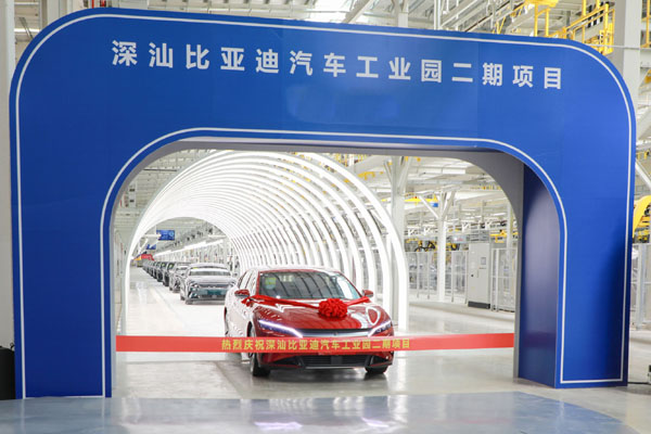 深汕特別合作區比亞迪汽車工業園新車下線。