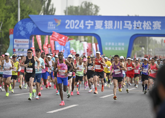 5月19日,參賽選手在馬拉松比賽中出發。新華社記者 馮開華 攝