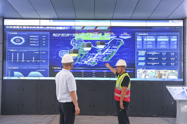 中鐵建重慶建筑科技有限公司工作人員向來訪者介紹該公司的構件數字工廠系統。新華社記者 王全超 攝