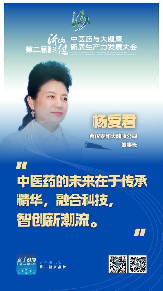 日前,第二屆“沂山論健·中醫藥與大健康新質生產力發展大會”在山東省濰坊市臨朐縣舉行。大會期間兩儀泰和大健康產業有限公司董事長楊愛君接受新華社“新華健康”記者專訪時,分享了她做為傳統企業負責人對探索創新型生物醫藥企業新賽道的思考,并展望了中醫藥與現代科技融合的未來。