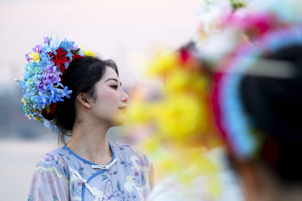 “源于泉州蟳埔村的簪花圍近來最受大家追捧。有人說骨笄頭飾是古代‘骨針安發’遺風,也有人說蟳埔村民是阿拉伯人后裔,簪花圍源于中亞婦女戴花的習俗?!甭门牡曦撠熑她埪反媸翘K文竹的老鄉,在泉州考察一個禮拜后,決定在福州落腳。他說,市民、游客頭戴簪花圍,身穿民族服飾,既感受傳統文化的魅力,也表達對幸福生活的熱愛。
