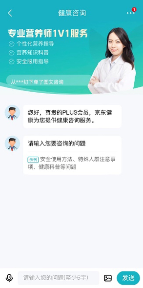 今年京東618期間,京東健康將對“問營養師”服務進行全面升級,承諾今年京東618期間,無論用戶在哪個平臺購買保健品,如果遇到不會選、不放心、不知道怎么吃等問題,都可以來京東健康,在線找營養師免費咨詢。