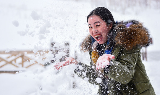 長白山景區內玩雪的游客?!∮浾摺⊥蹶伙w 攝