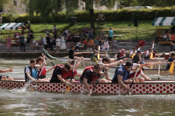 在斯洛文尼亞首都盧布爾雅那市中心的盧布爾雅尼察河上,8日舉行了一場中國傳統龍舟賽。13支隊伍共約130人參加比賽,其中還包括來自克羅地亞、意大利和捷克的參賽隊伍。