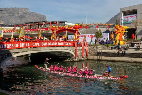 ??6月8日,人們在南非開普敦參加第二屆“文化中國·開普敦龍舟節”比賽。新華社記者王雷攝