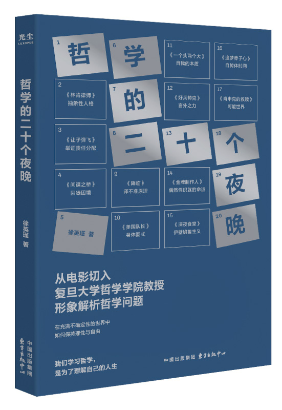 有人會說,哲學高不可攀。那么我會把《哲學的二十個夜晚》推薦給他。讀這本書就像在翻閱和徐英瑾教授的深夜聊天記錄,他在用電影中的故事給我們講哲學。電影中的那些情節,在書中被拆開揉碎,深挖出其中的哲學意蘊。從《肖申克的救贖》里的自由夢想到《間諜之橋》里的合作博弈,這本書帶著我們一邊看電影,一邊學哲學,四大主題——論證、未來、社會、人生,每一個主題都由淺入深,妙趣橫生,通過二十個哲學問題幫助我們從理性的角度理解復雜多變的人生。(儲學軍??新華網董事長)